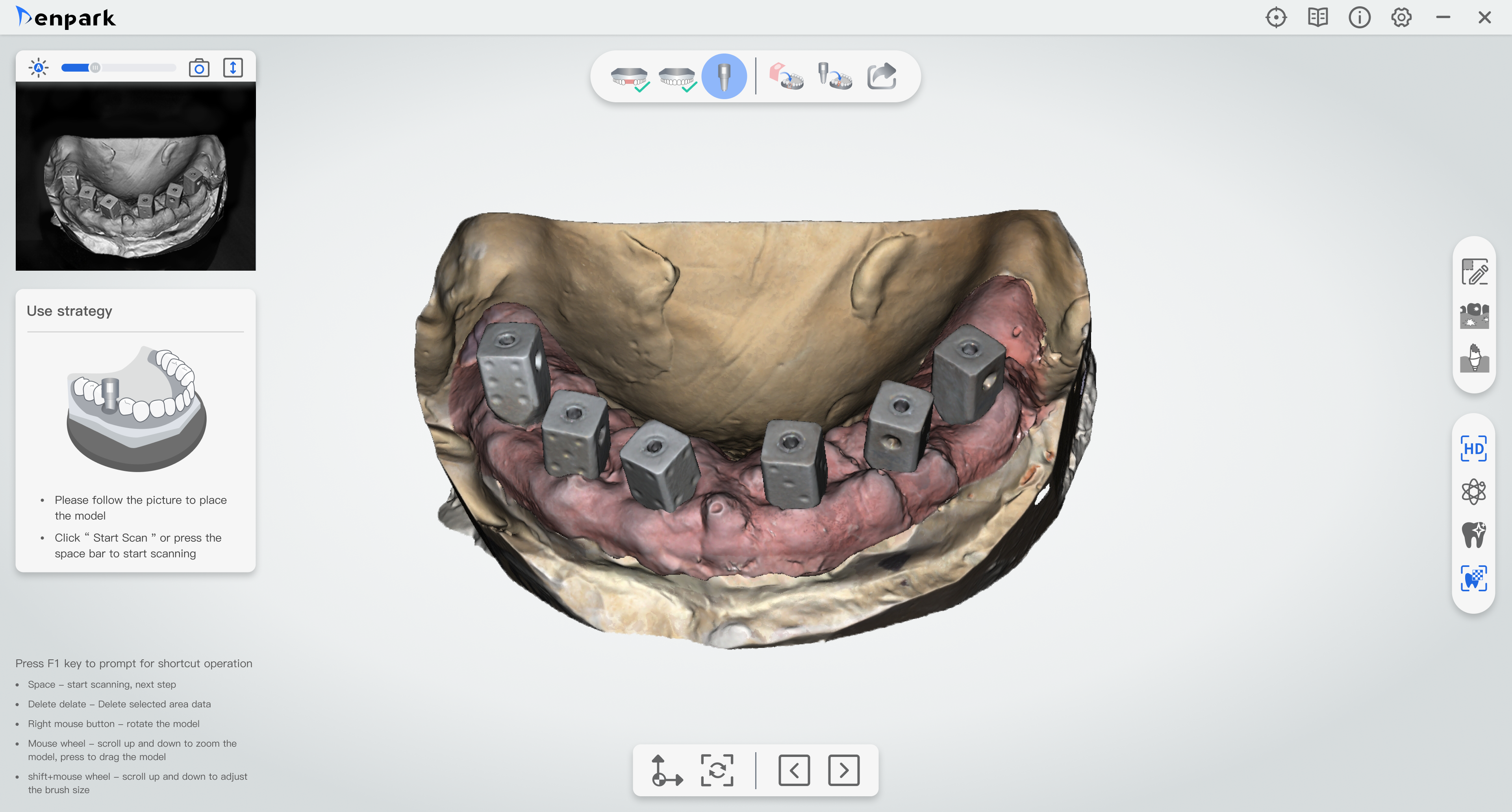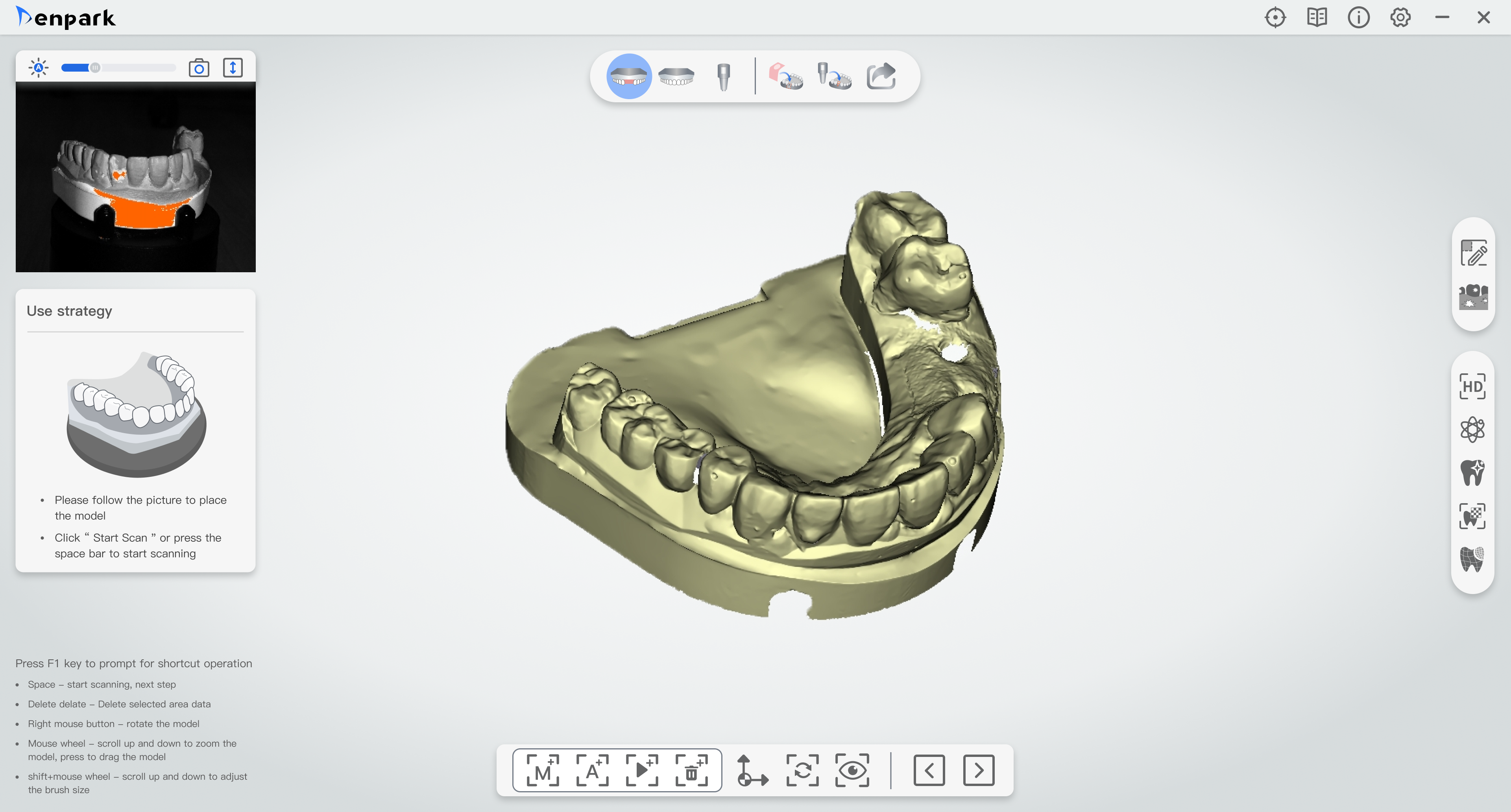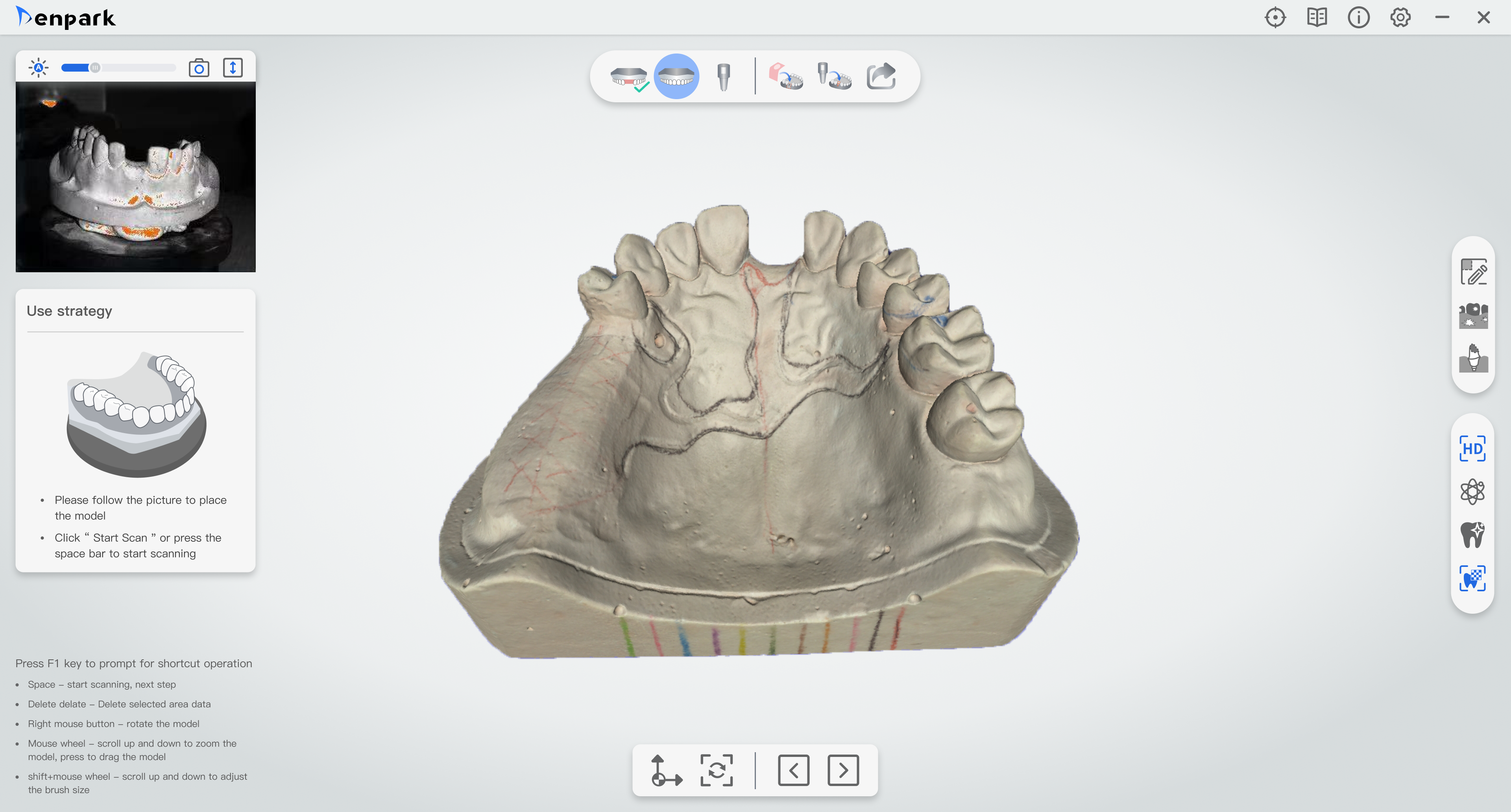 The articulator scanning mode supports multiple types of articulator scanning, supports static and dynamic scanning switching of the articulator, and meets a variety of scanning needs. The dynamic articulator scanning mode scans the entire buccal surface occlusion to improve the accuracy of alignment.